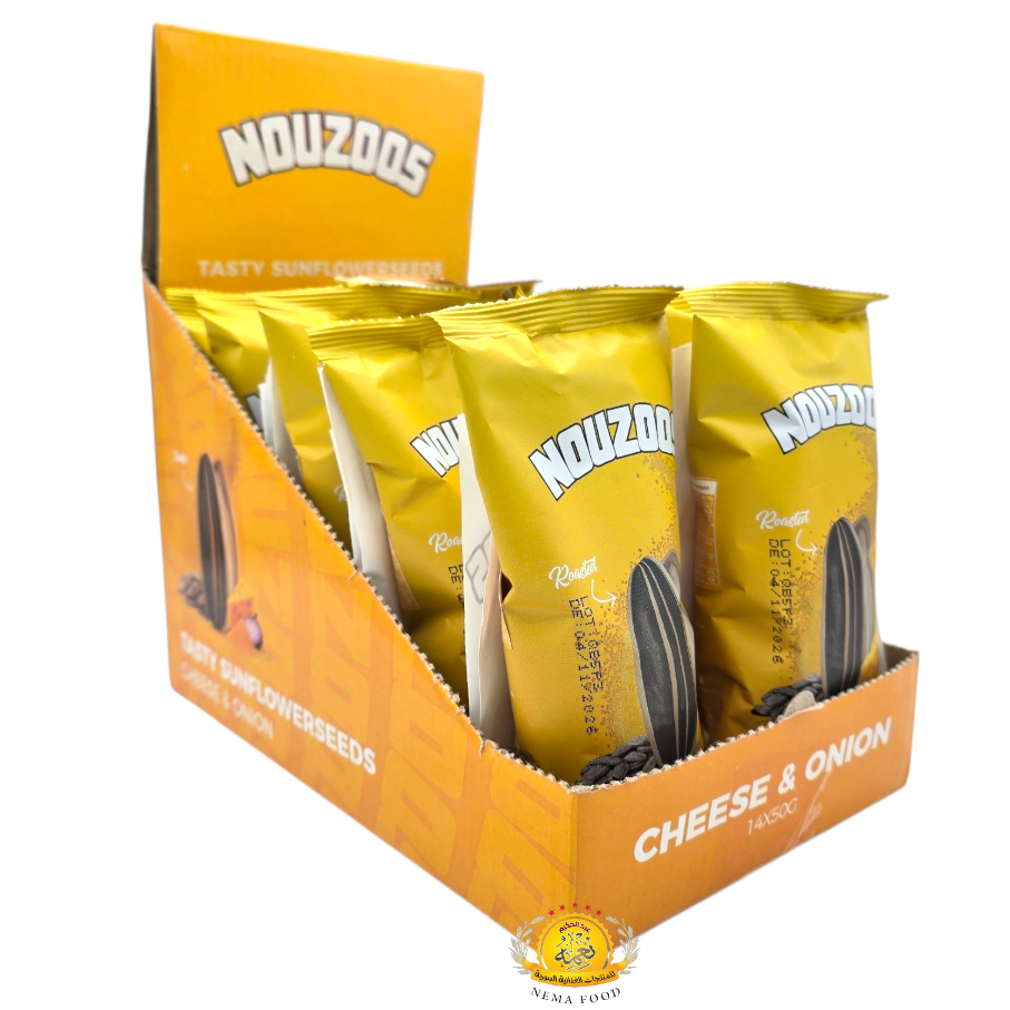 بزر شمس محمص بنكهة الجبنة والبصل Nouzoos 14×50Gr