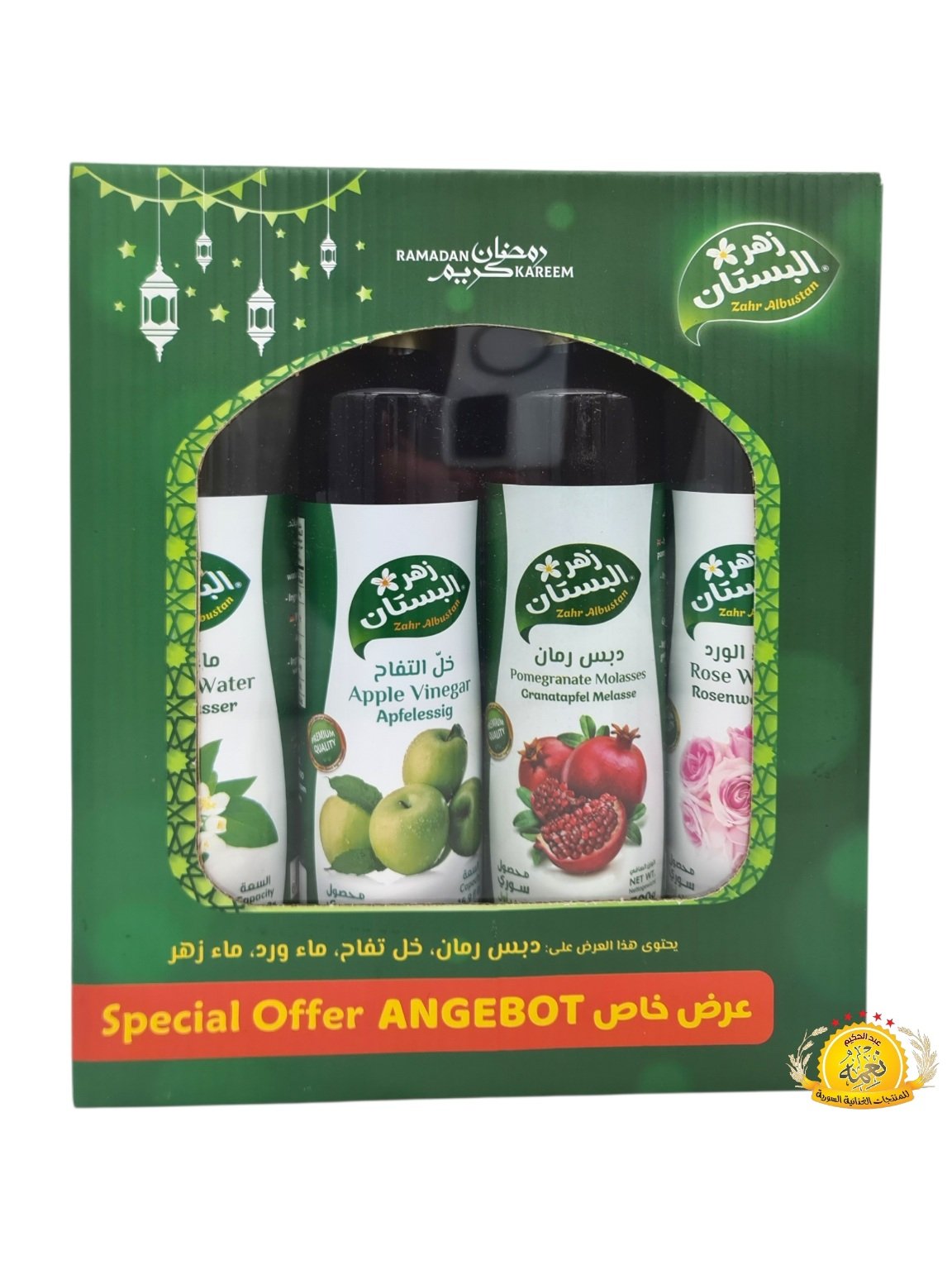 بوكس رمضان من زهرة البستان (خل التفاح / ماء الورد / ماء الزهر / دبس رمان ) 4×4